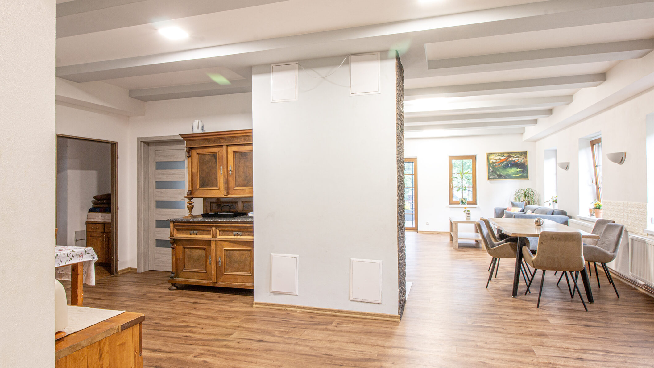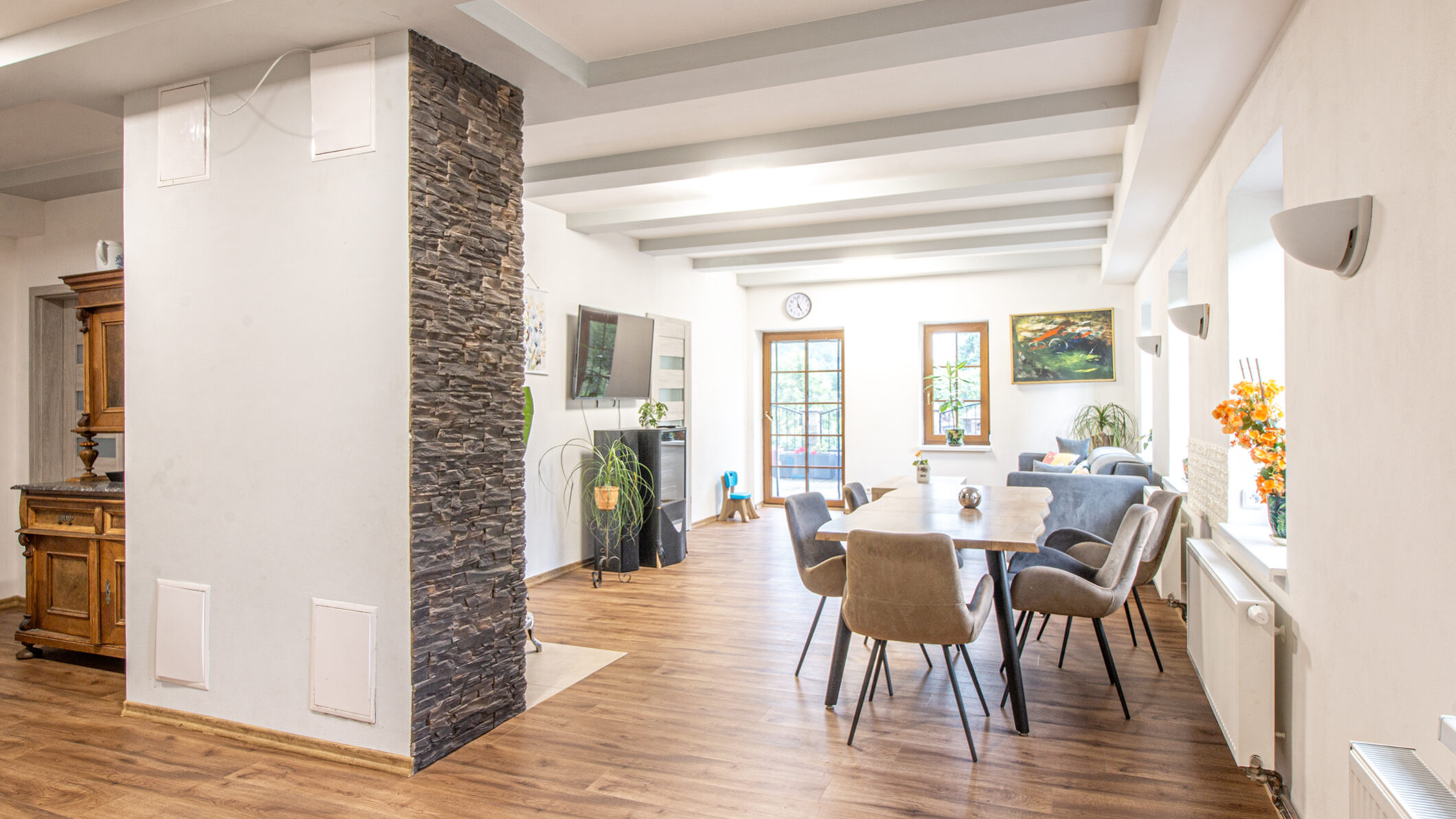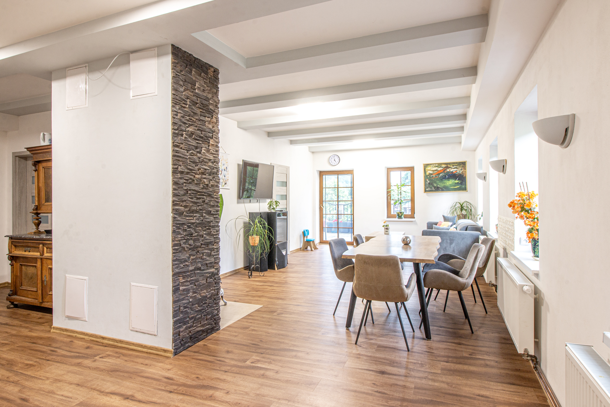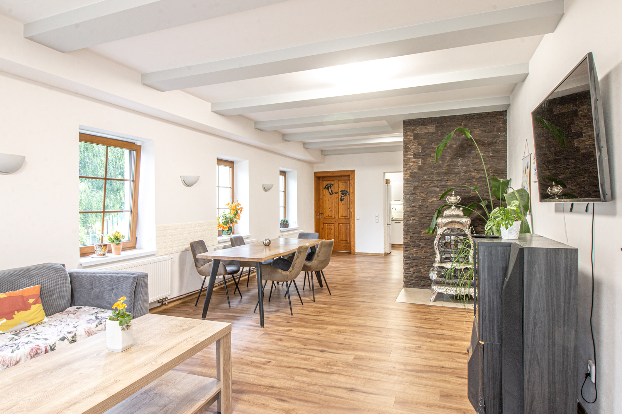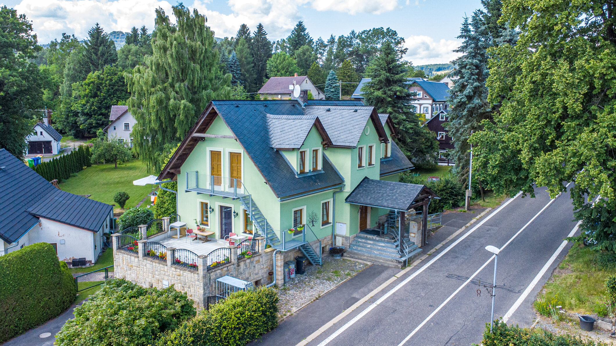 Nabízíme k prodeji nádherný a prostorný rodinný dům v Petrovicích, který prošel kompletní rekonstrukcí. Tento cihlový dům o třech nadzemních podlažích nabízí celkem 10 místností, včetně dvou velkých moderních bytů a čtyř pokojů, každý s vlastní koupelnou. Díky této dispozici je ideální nejen pro rodinné bydlení, ale také pro podnikání jako penzion či jiné ubytovací zařízení. Dům se nachází v klidné části obklopené přírodou s krásným výhledem na Lužické hory z prostorné terasy. Je situován poblíž německých hranic, nedaleko města Žitava a blízko měst Jablonné v Podještědí a Liberec. Tento luxusní dům je ideálním řešením pro ty, kteří hledají klidné bydlení v přírodě s dobrou dostupností městských center. Celková plocha pozemku činí 378 m². Nezmeškejte tuto jedinečnou příležitost!